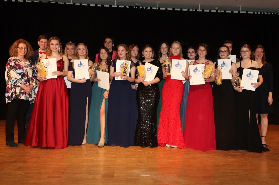 Ganz im Zeichen der Goldenen Zwanziger - und natürlich auch mit einem wehmütigen Blick zurück auf eine tolle Schulzeit - war das Programm der akademischen Abiturfeier gehalten, begleitet vom Schulorchester Heavy Tones und den Eigenbeiträgen der Abiturientinnen und Abiturienten, getragen von der Vorfreude auf die nun beginnende „great party“ des Lebens. Zuvor aber ehrten die Schulleitung und Fachlehrer einige besonders verdiente und leistungsstarke Schülerinnen und Schüler, so zum Beispiel Livia van Krüchten für ihr besonderes soziales Engagement, Florian Friedrich, Philipp Leon und Christopher Buckreus als beste Physiker, Ben Ranon Steiner als besten Chemiker und mit dem Sonderpreis von „Jugend forscht“, sowie Rahel Dirlt für herausragende Leistungen im Fach Geschichte.