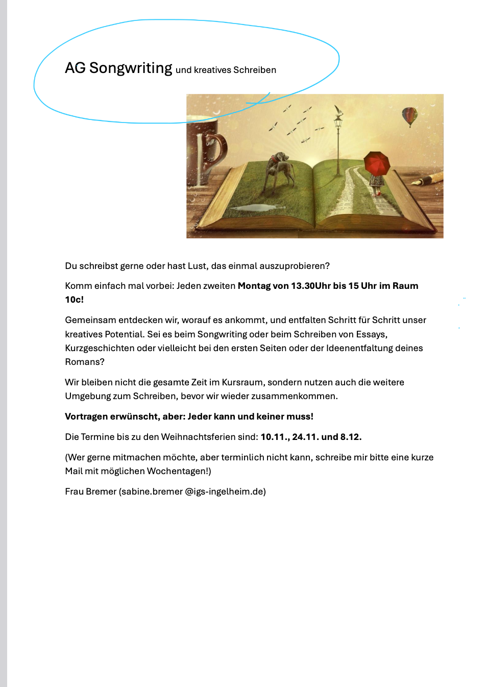 Anmeldung bei Frau Schnipp im Team MSS (Oberstufe) oder per Email: vera.schnipp@igs-ingelheim.de