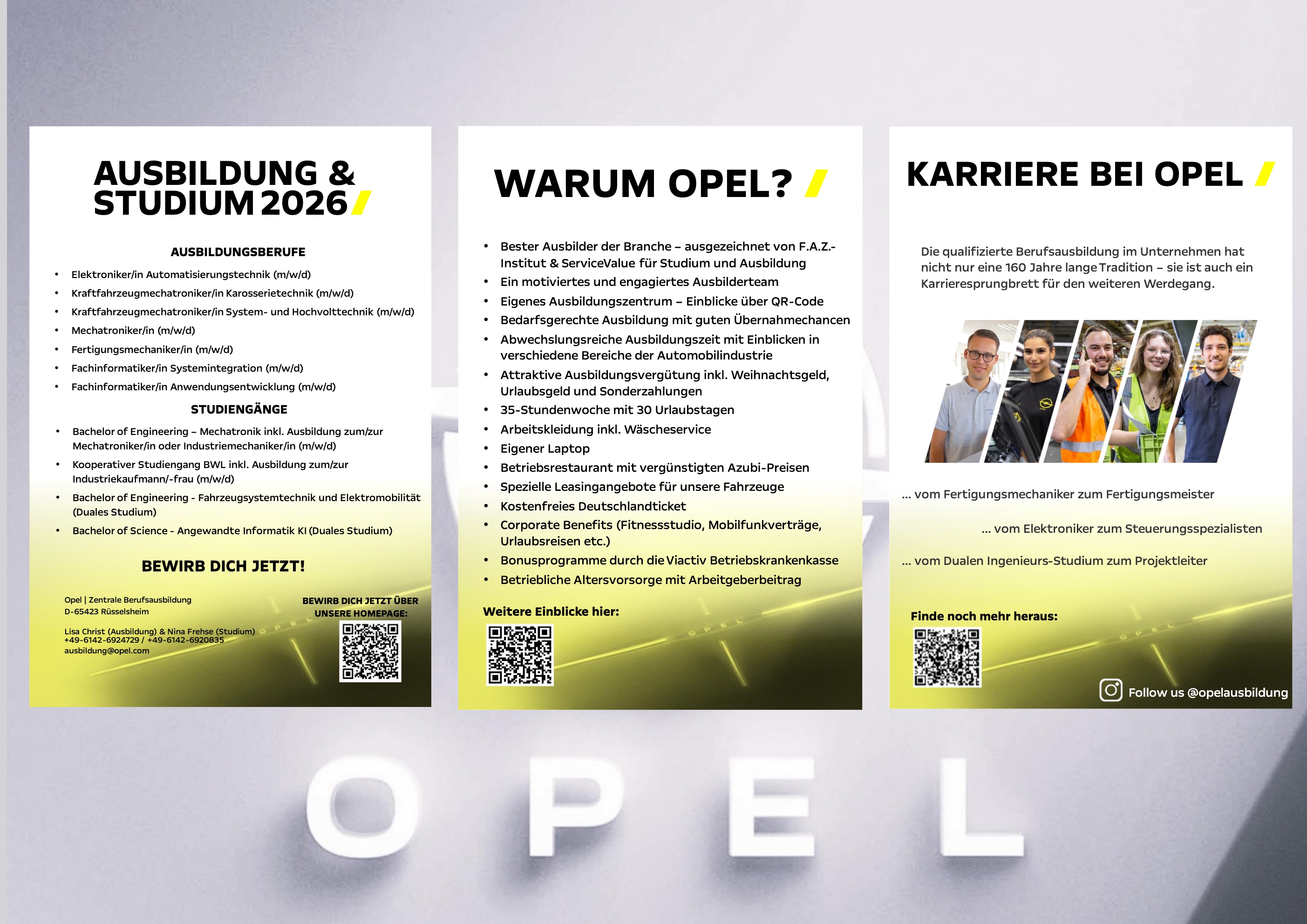 Wir freuen uns, Ihnen mitteilen zu können, dass wir ab sofort Bewerbungen für das Ausbildungsjahr 2026 am Standort Rüsselsheim entgegennehmen.