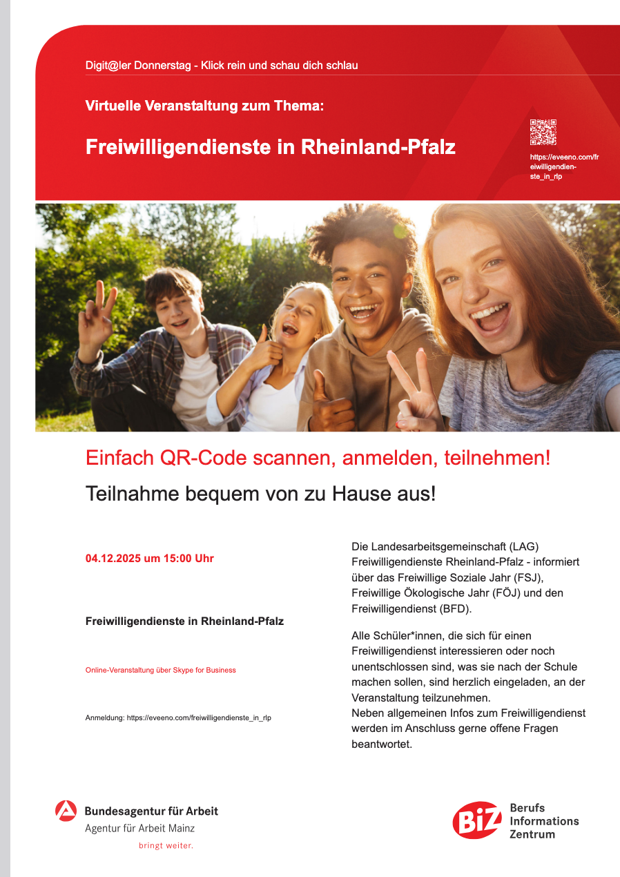 Die Veranstaltung bietet Ihren Schülerinnen und Schülern eine hervorragende Gelegenheit, direkt mit regionalen Ausbildungsbetrieben, Institutionen und Fachleuten in Kontakt zu treten.