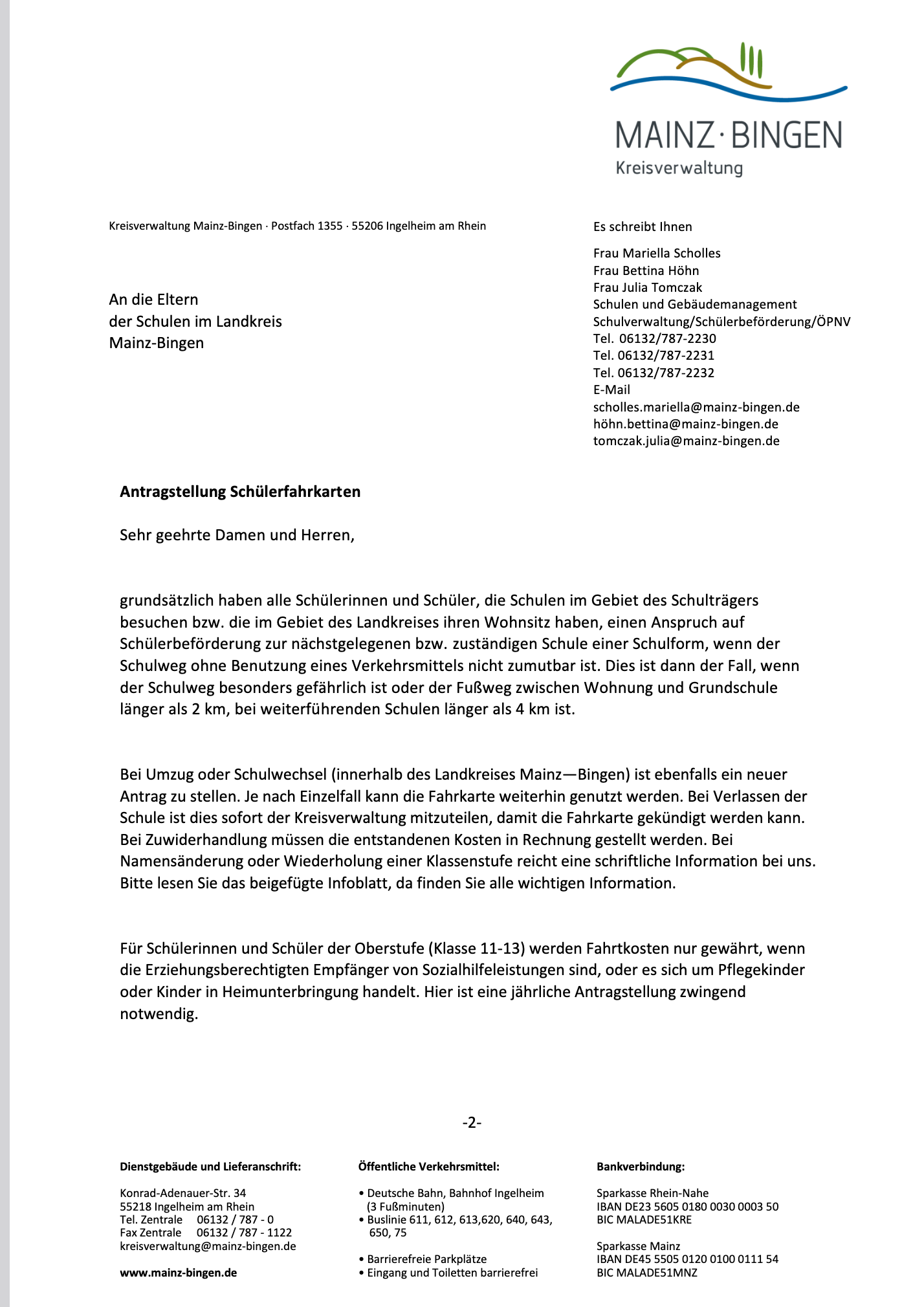 Anfragen und Beschwerden zum Thema ÖPNV / Schülerbeförderung - Landkreis Mainz-Bingen