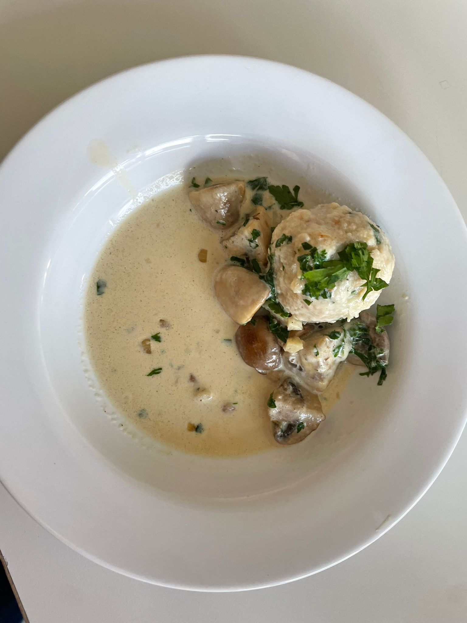 Aus Brötchen, Milch und Butter...Semmelknödel selbst gerollt. Dazu entweder Pilzsoße oder Gemüsesoße.