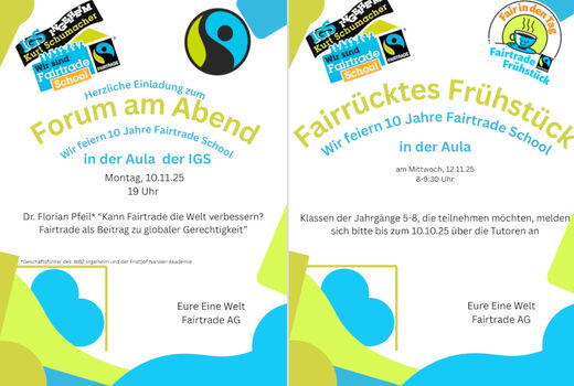 Einladung zu Veranstaltungen anlässlich des Jubiläums „10 Jahre Fairtrade-School“