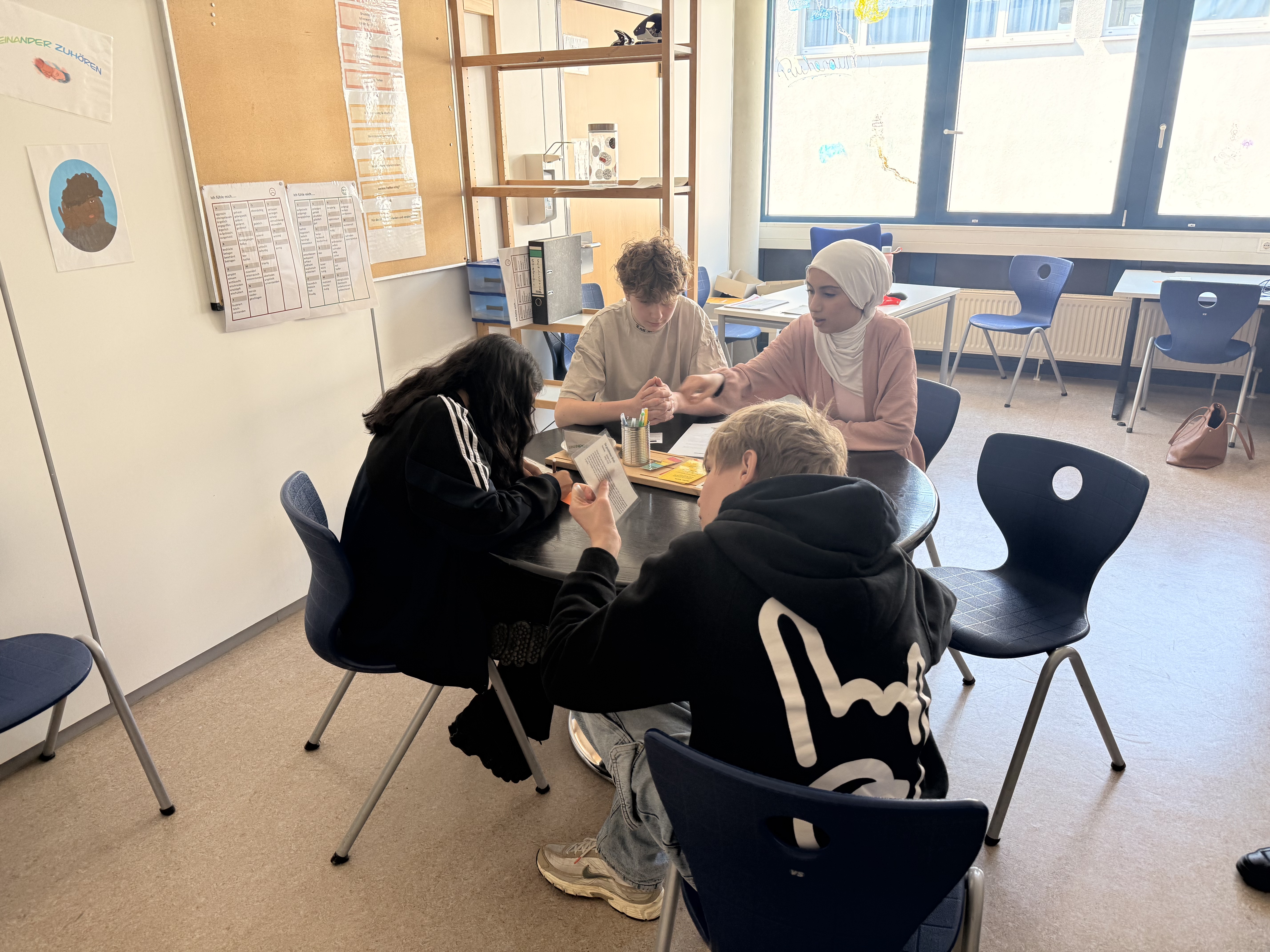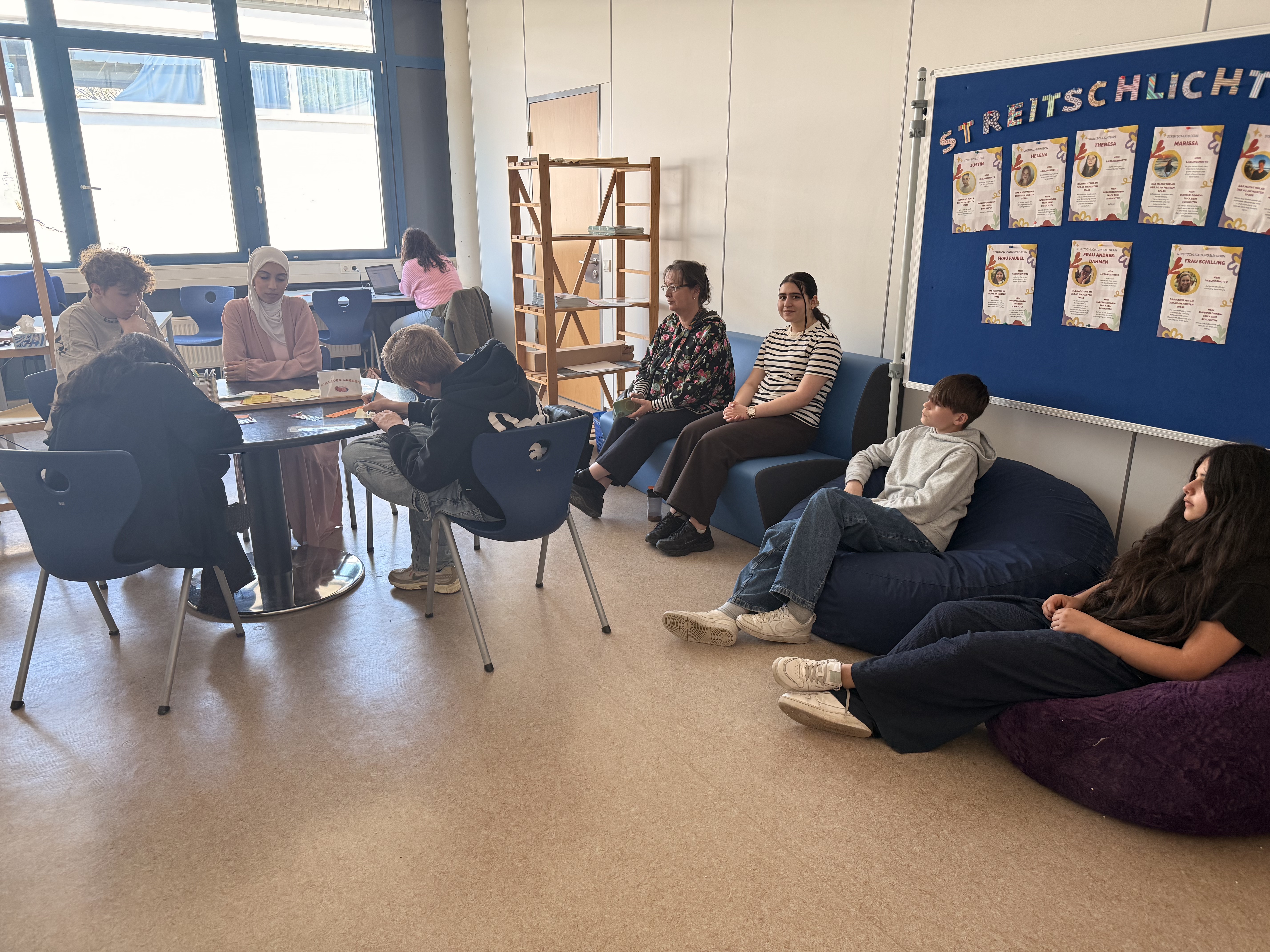 Voll motiviert waren auch unsere aktiven Streitschilchter und Streitschlichterinnne aus dem Jahrgang 9 und Jahrgang 10. So wurden wir Lehrerinnen tatkräftig unterstütz, denn nur so konnten Rollenspiele leichter umgesetzt werden und auch hilfreiche Erfahrungen und Tipps, der Profis angenommen werden.