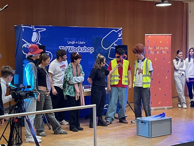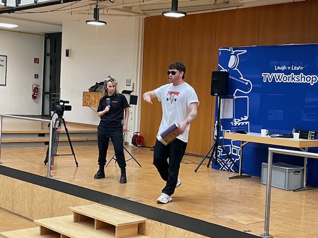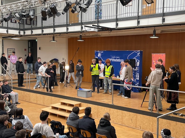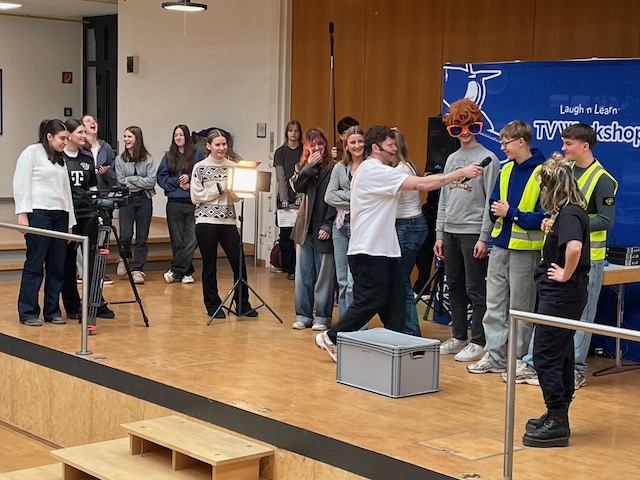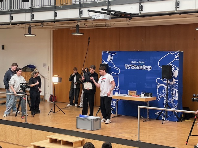 Am 28.01.26 nahmen SchülerInnen der Jahrgangsstufen 7 bis 11 an einer besonderen englischsprachigen Veranstaltung in der Aula unserer Schule teil. Ein Schauspieler-Duo aus England besuchte uns im Rahmen seiner Deutschland-Tournee und gewährte spannende Einblicke in die TV-Branche – und dies, wie man es von Briten nicht anders erwartet, mit einer großen Portion Humor.