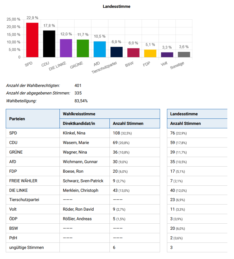 Im gesamten Bundesland sah die Stimmenverteilung der Schüler so aus: