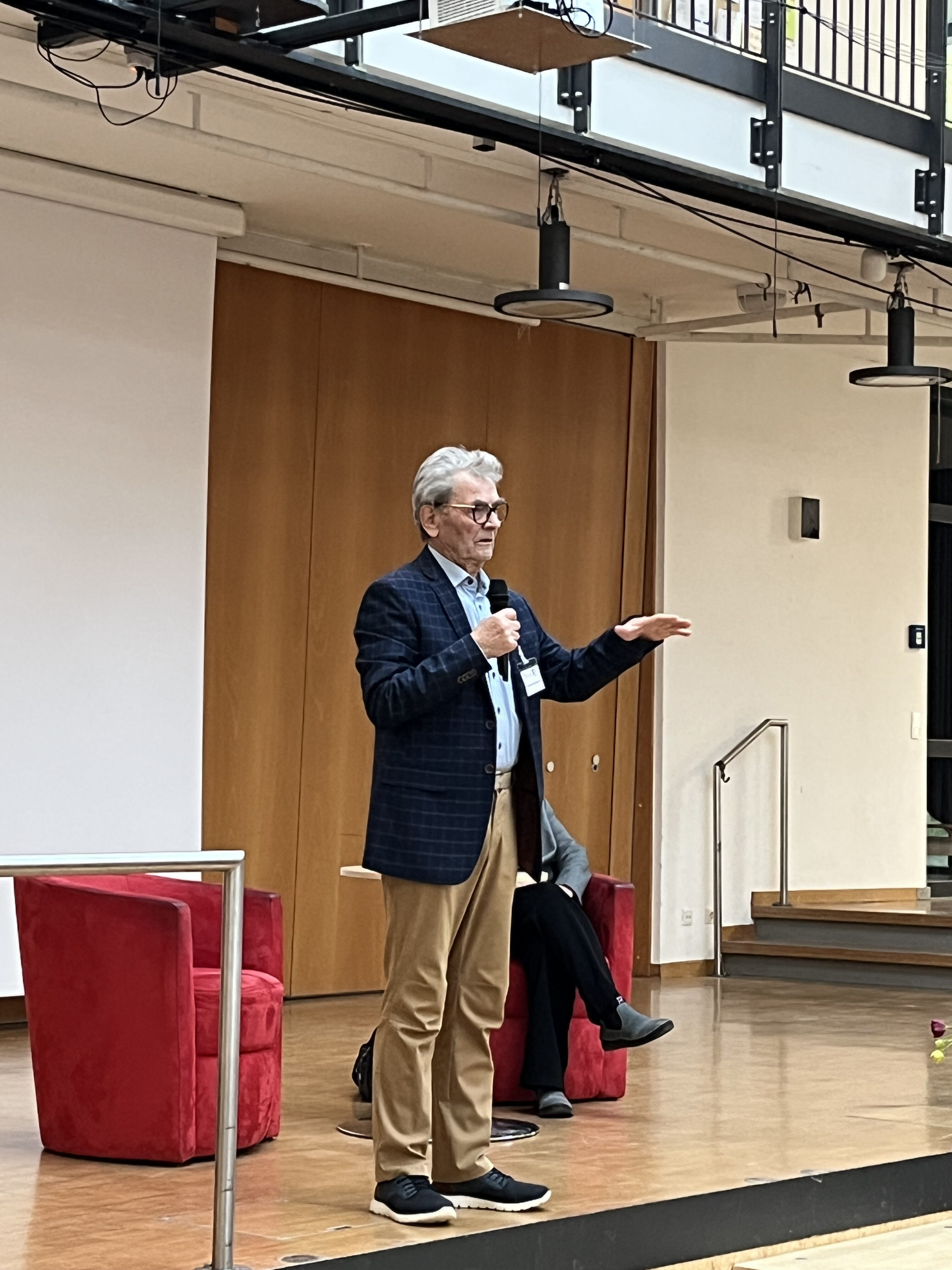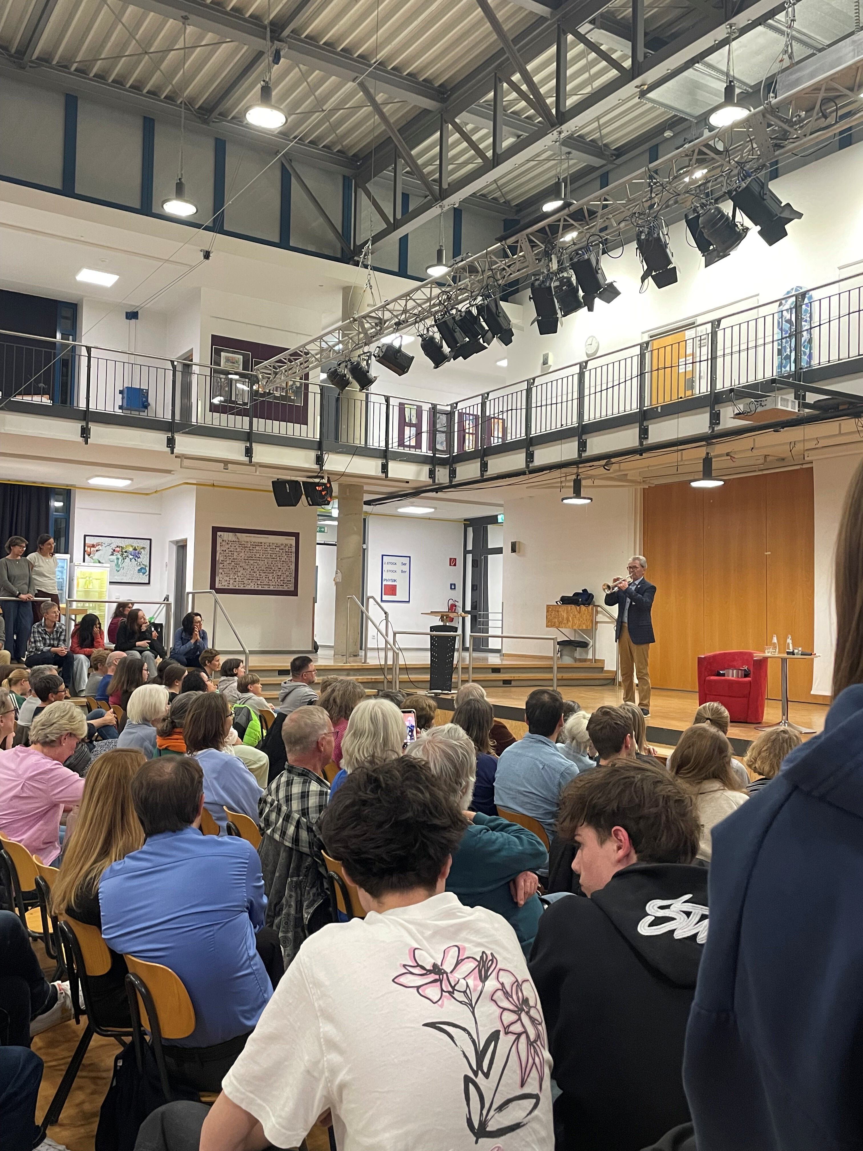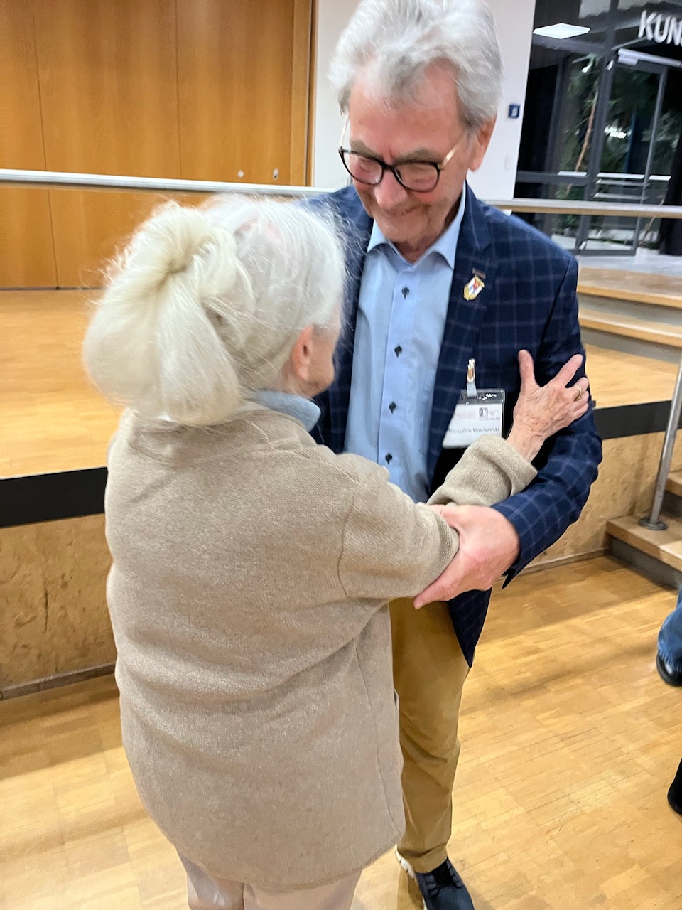 Und doch ist Mietek Grochowskis Bericht durchweg von Herzenswärme und Dankbarkeit durchzogen. Er beschreibt, wie er später mit der Trompete im Zirkus arbeitet, wie er heiratet, eine Tochter bekommt und die Ehe scheitert. Es ist immer wieder eine Menge Glück dabei und dann auch wieder ein Schicksalsschlag. Er jedoch hält sich immer an das, was seine Mutter gesagt hat, als sie aus dem Lager kam: „Blickt nicht zurück. Schaut nur nach vorn, gestaltet die Zukunft positiv. Ihr dürft nicht hassen. Wir wollen vergeben.“ Diese Haltung ist tief in ihm drin. Selbst wenn er die schlimmsten Geschichten erzählt, hat er Verständnis dafür, wie die anderen gehandelt haben. Er ist trotz größten Ängsten – vor der Dunkelheit, vor dem Einnässen, vor Verlust – in die Welt gezogen und hat sein Leben gemacht. Nach zwei Stunden beendet er seinen Vortrag und spielt nochmal zwei Stücke auf seiner Trompete. Ein Mann, der so freundlich ist, so positiv trotz schlimmsten Erlebnissen in seiner Kindheit – einfach beeindruckend.